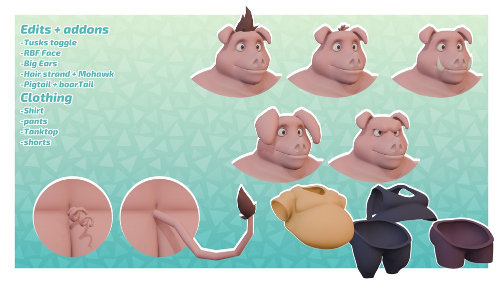 - 4 Addons : Hair strands, Mohawk, Pigtail, Boar tail