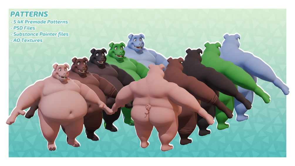 - Avatar edits Include, Tusks Toggle, RBF Face Slider, Big Ears Slider, PHAT Slider